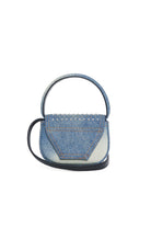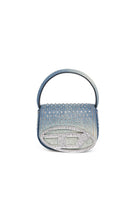 1DR XS solarised denim bag covered with rhinestones. Crescent shape and flap with metallic oval D logo with crystals. Magnetic closure. Adjustable and removable shoulder strap. Hand-held. An iconic accessory, celebrating Diesel's heritage. Comes with branded dust bag.