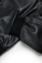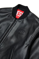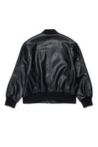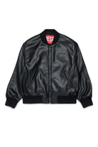 Biker jacket in coated fabric with printed logo on the chest, featuring ribbed finishes and side pockets.