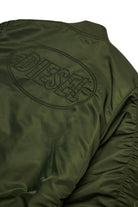 Gabardine bomber jacket perfect for mid-seasons. Shooting along the sleeves adds movement to the silhouette, while the maxi Oval Diesel logo embroidered on the back lends style and recognition to the garment.