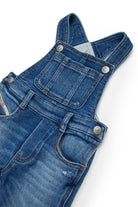 Medium blue JoggJeans® long overalls with abrasions. A garment with timeless appeal, perfect for a casual outfit.
