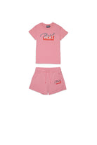 Short tracksuit with logo, consisting of a crew neck t-shirt and shorts with drawstring waist.
