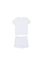 Tracksuit with logo and scalloped trims. The set includes a short-sleeved top and matching shorts.