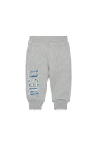Sweatshirt jogger pants. Elastic at the waist and ankle. Diesel trompe-l'oeil print on the front along the leg, simulating torn denim. Flat front pockets and breast pocket on the back.