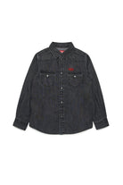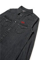 Long-sleeved shirt in lightweight black denim. Button closure. Breast pockets. Features the Iconic Oval D logo embroidered in contrasting color on the front heart side. Made of 100% cotton.