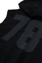 Hoodie sweatshirt with logo on the chest and number on the back, featuring a mesh construction and a front kangaroo pocket.