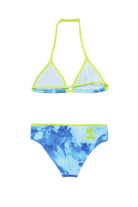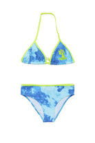 Lycra bikini swimsuit featuring an allover 'Maltinto' tie-dye effect print. Personalised with Diesel Palm fluo graphics. Adjustable lacing.
