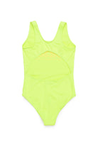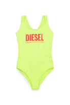 One-piece swimsuit in fluorescent lycra. It features a Diesel For Successful Living institutional logo in contrasting color on the front.