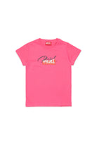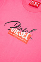 Cotton jersey T-shirt with glittery cursive logo superimposed on the Diesel for successful living logo.