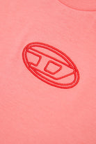 Short-sleeved jersey T-shirt with boxy fit and slightly dropped sleeves for a relaxed, contemporary look. Embroidered Oval D logo outline in contrasting color on chest adds distinctive detail. A versatile garment perfect for any occasion.