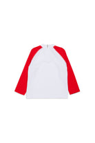 T-shirt with logo on the chest, featuring long contrast-color sleeves and decorative stitching. Ideal for a casual and dynamic look.