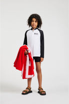 Towel with oversized contrasting logo. Featuring a striking graphic design.