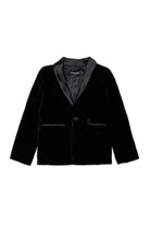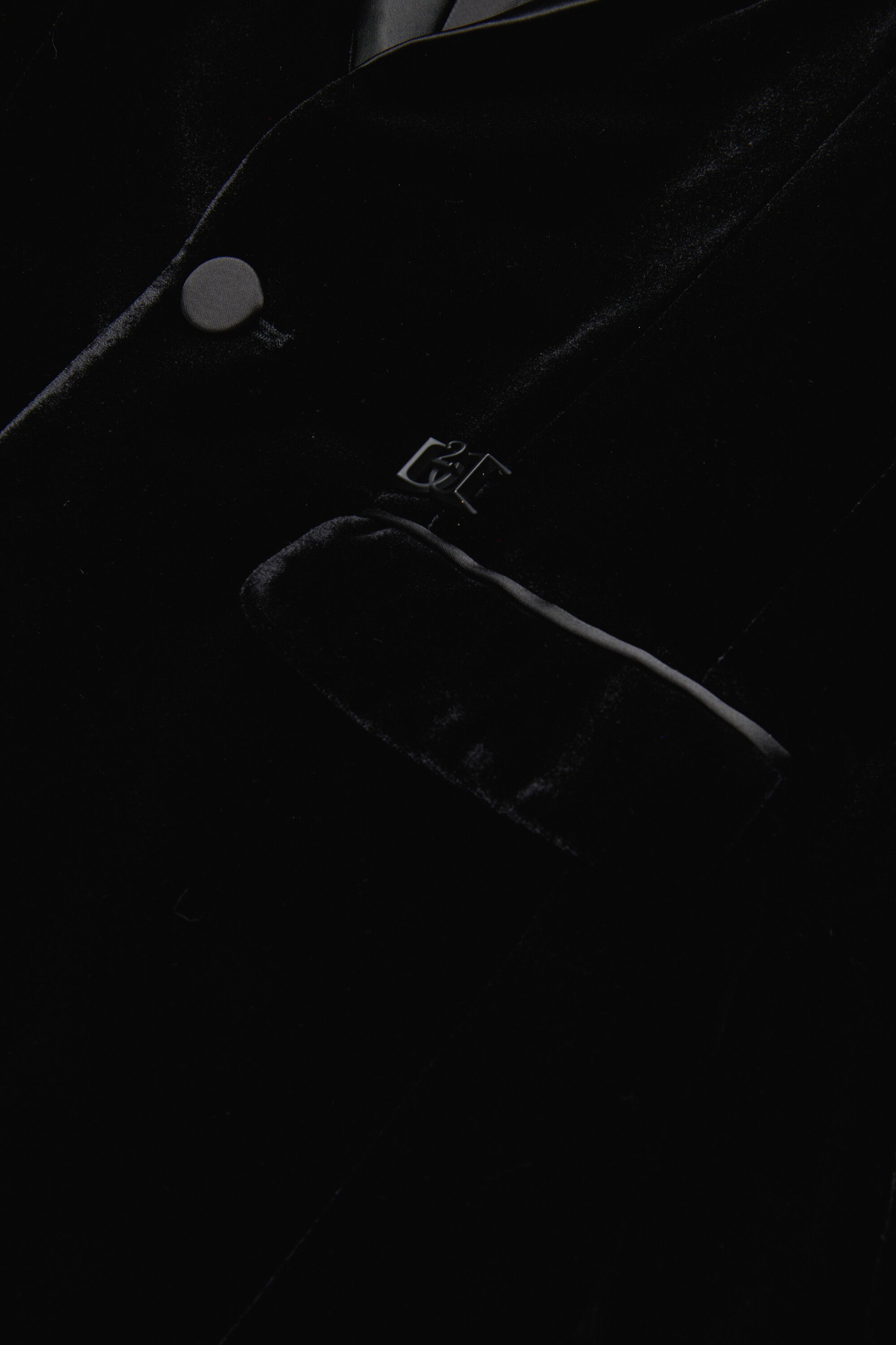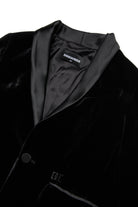 Velvet blazer jacket with matte black D2 metal plaque applied. An elegantly cut model with refined details that reinterpret the classic blazer in a modern key. Perfect for formal events and special occasions.