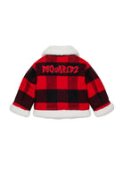 Long-sleeved shearling-type jacket in soft plaid flannel with teddy inner. A mix of comfort and character, with utility pockets and the horror-themed logo on the back.