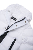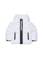 Long quilted padded jacket in glossy nylon with hooded hood. The contrasting Dsquared2 logo along the closure gives an iconic and instantly recognizable touch.