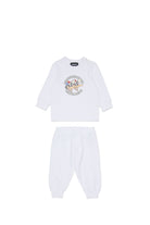 Stretch cotton jersey long jumpsuit set with ruined effect Brotherhood Dsquared2 print. Cartoon-style duck graphics add a playful touch. Comes with jumpsuit bag.
