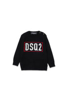 Long-sleeved crew-neck pullover in soft merino wool with logo jacquard DSQ2. A warm and comfortable garment designed to face winter in style.