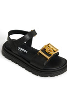 Sandals with a gold metallic detail on the strap. A bold-style model with a thick sole and structured upper.