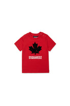 Soft cotton jersey short-sleeved T-shirt with logo logo Sport where the Canadian Maple Leaf, an iconic symbol of the Dsquared2 universe, is reinterpreted with a flocked finish with a ruined effect. A garment that combines style and practicality.