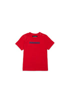 100% cotton T-shirt with Dsquared2 logo on the chest. The model features short sleeves and a practical button opening on the shoulder.