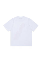Cotton T-shirt with printed logo. The model features short sleeves and a three-dimensional print on the front.