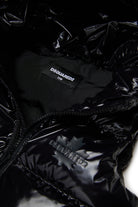 Glossy hooded padded vest with rubberized Maple Leaf logo, hinting at the brand's Canadian identity. Ideal for adding a touch of style to casual outfits.