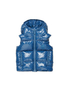 Glossy hooded padded vest with rubberized Maple Leaf logo, hinting at the brand's Canadian identity. Ideal for adding a touch of style to casual outfits.