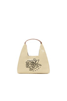 Diamond shoulder bag with logo and embroidered floral pattern. A modern design created to add a distinctive touch to any outfit.