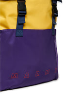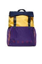 Backpack with one main compartment and mesh side pockets. Marni Outline logo in contrasting colour. Buckle closure. Padded shoulder straps at back. Sleeves on top. 100% cotton inner lining. Measurements: 40 cm high, 30 cm wide, 15 cm deep.