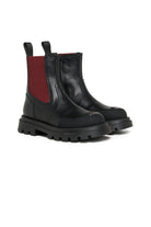 Leather Chelsea boots with rubberized logo on the toe. Contrasting color side elastic bands ensure a comfortable and practical fit, while the clean, versatile look makes them ideal for any occasion.