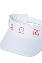 Gabardine visor. Marni Outline logo in contrasting color on the front. Made of 100% cotton. Adjustable velcro closure at the back. Size I: 52 cm total width.Size II: 54 cm total width.Size III: 56 cm total width.