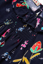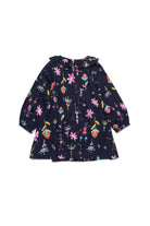 Short dress in soft cotton jersey with Nutcracker all-over print graphics, a vibrant and colorful pattern. The design is embellished with ruffles on the crew-neck that give a romantic touch.