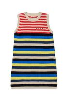 Mini dress with logo and multicolor striped pattern. Sleeveless design with ribbed crew neck for a modern look.