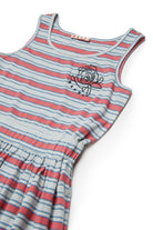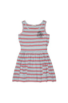 Short dress with logo and striped pattern. The design features a sleeveless top and an applied pocket detail.