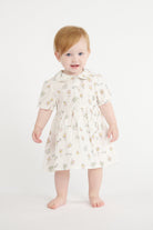 Short dress with all-over logo and floral print, featuring a rounded collar and short sleeves.