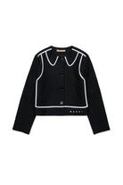 Long-sleeved wool-blend flannel jacket. The contrasting piping on the front adds an elegant and refined touch, while the embroidered institutional logo enhances its authenticity. Perfect for special occasions.