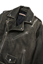 Genuine leather jacket with a bold and timeless character. The worn effect adds personality, while the lightweight padding ensures comfort and warmth. The off-center zipper and belt at the waist make it distinctive and unique. Perfect for creating a gritty and original look.