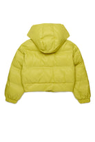 Padded jacket with removable hood. The slightly cropped fit and institutional logo in contrasting color make it a versatile and stylish garment perfect for tackling the winter season.