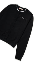 Cardigan in 100% cotton with embroidered logo on the chest and contrasting trim on the crew neck.
