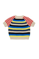 Crew-neck pullover in 100% cotton with logo and multicolor striped pattern. Short-sleeved model finished with ribbed edges at the hem, neckline, and cuffs.