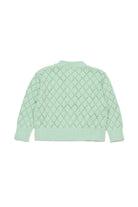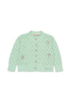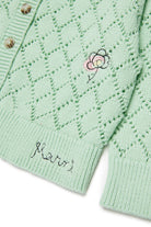 Cardigan made of 100% cotton with openwork diamond pattern and floral embroidery. A model with original style and carefully crafted details.