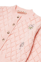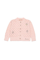 Cardigan made of 100% cotton with openwork diamond pattern and floral embroidery. A model with original style and carefully crafted details.