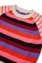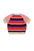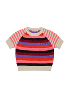 Crew-neck pullover in 100% cotton with logo and multicolor striped pattern. Short-sleeved model finished with ribbed edges at the hem, neckline, and cuffs.