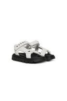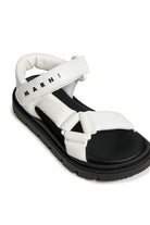 Platform sandals with a modern design. They feature an institutional logo printed in contrasting colour on the belt. Sole with thermoplastic rubber platform. Made in Italy.