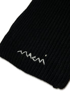 Rib-knit wool-blend scarf embellished with handmade Marni logo embroidered in contrasting color. Soft and snug, perfect for protecting from the cold with a touch of elegance and authenticity.