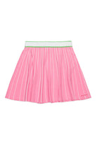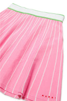 Striped viscose-blend knit mini skirt. Elastic waistband. Institutional logo embroidered in contrasting color on the front.