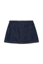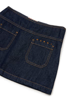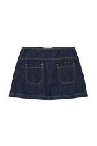 Mini skirt with logo and contrast stitching, featuring patch pockets on the back and cotton denim fabric.