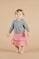 Flounced fleece skirt perfect for creating casual, sporty looks. The elastic waistband ensures comfort, while the institutional logo printed on the bottom adds a distinctive touch.