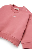 Long-sleeved crew-neck sweatshirt enhanced by flounces on the bottom that give a touch of movement and femininity. Perfect for original casual looks.
