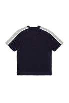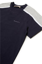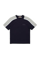Short-sleeved crew-neck T-shirt in jersey with colorblock details and contrasting piping. Institutional logo on the front on the heart side. Made of 100% cotton. A sports-inspired garment suitable for various occasions.
