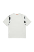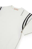 Soft cotton jersey short-sleeved T-shirt embellished with color-contrasting ribbed stripes in the armhole. The handmade Marni logo embroidered on the shoulder completes the design with an authentic and sought-after accent.
